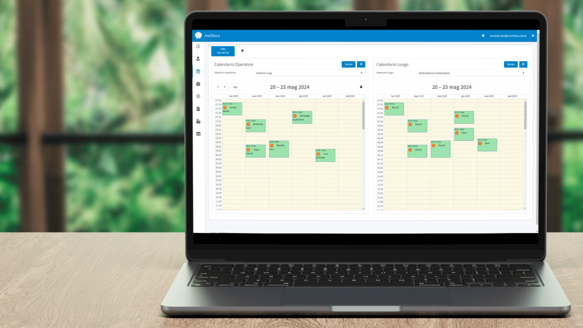 - Calendari personalizzati per ruolo: la segreteria può visualizzare gli appuntamenti di tutti gli operatori e ambulatori, mentre gli operatori vedono solo i propri impegni.